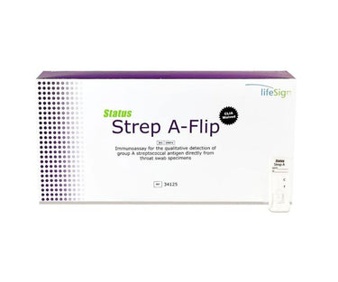 Status™ Strep A Flip Rapid Point-of-Care Test is a immuno-chromatographic assay for detection of group A streptococcal antigen directly from a throat swab sample.